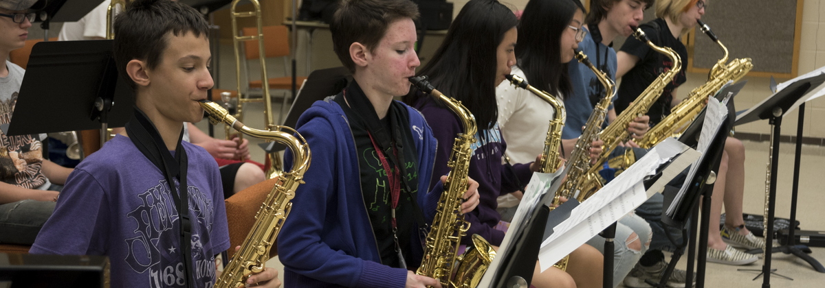 Jazz Day is a unique opportunity for high school jazz bands and their directors to perform for each other and NIU School of Music faculty members. Each band performs a 20-minute concert in the Music Building concert hall or recital hall, followed by a 20-minute clinic session conducted by NIU faculty. Students and band directors also participate in a clinic led by NIU jazz faculty. Outstanding soloists will receive scholarships to attend Jazz Combo Day!